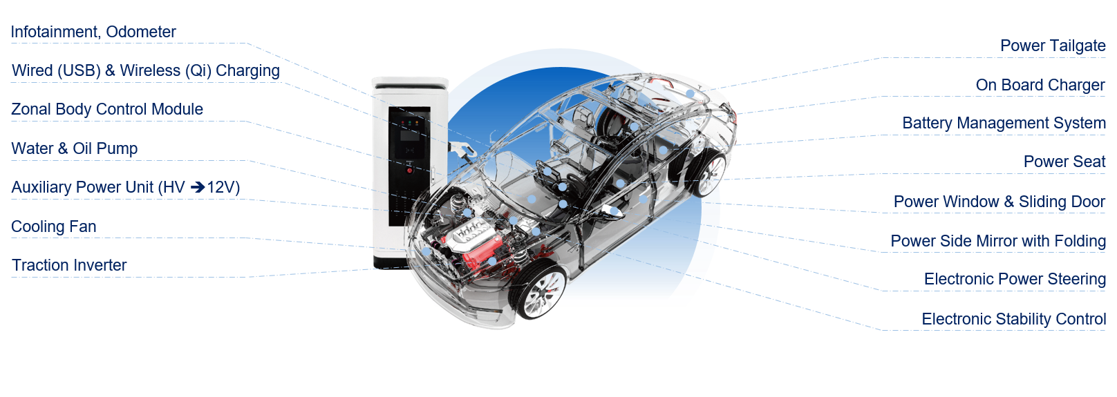 汽車(chē)應(yīng)用從有刷電機(jī)到無(wú)刷電機(jī),車(chē)用照明大量使用 LED 照明的轉(zhuǎn)變,汽車(chē)也越來(lái)越電動(dòng)化,智能化,催生極大功率器件的需求。捷捷微電 順應(yīng)這一趨勢(shì),車(chē)規(guī)級(jí)產(chǎn)品持續(xù)聚焦在汽車(chē)三電(電池,電源及電機(jī)),車(chē)身照明及智能出行 (ADAS, Telematics and Infotainment systems, etc.) 等應(yīng)用。 車(chē)規(guī)級(jí) MOSFET 產(chǎn)品布局先進(jìn)封裝的基礎(chǔ)上,盡量降低導(dǎo)通內(nèi)阻的同時(shí),能額外降低器件結(jié)電容效應(yīng),減少 Qg,進(jìn)而提供較高的工作效率,減少發(fā)熱,提供兼容市面主流應(yīng)用先進(jìn)封裝架構(gòu)的高可靠性車(chē)規(guī)級(jí)產(chǎn)品。 車(chē)規(guī)級(jí) TVS 采用獨(dú)特的 CLIP 結(jié)構(gòu),相對(duì)于傳統(tǒng)的 A+B 結(jié)構(gòu),可以避免虛焊,減少芯片應(yīng)力,提供高可靠性。針對(duì)電源及電機(jī)開(kāi)關(guān)當(dāng)中可能出現(xiàn)的瞬態(tài)浪涌及各種干擾,捷捷微電 車(chē)規(guī)級(jí)二極管 (TVS、ESD、穩(wěn)壓/續(xù)流二極管) 可以提供良好的高可靠性保護(hù)。在性能上實(shí)現(xiàn)卓越的鉗位能力、漏電流小、快速的響應(yīng)速度,滿(mǎn)足 AEC-Q101 Rev-E 等級(jí)規(guī)范。